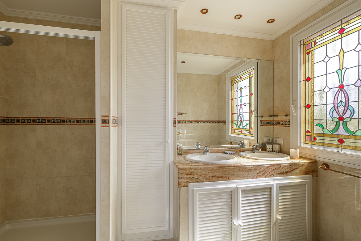 A través de una majestuosa escalera de mármol, enmarcada de coloridas vidrieras, accedemos a la primera planta donde se sitúan los tres amplios dormitorios con su propia terraza y con vista privilegiadas del magnífico entorno. Dos baños espaciosos y de buen gusto generan un espacio íntimo pero de gran comodidad. Por último, bajando a un subsuelo, encontramos una bodega adaptada para guardar tus mejores vinos y licores y una zona de barbacoa con cocina abierta a la zona de piscina que invita a disfrutar de alegres y bulliciosas reuniones familiares y de amigos. El jardín circundante realza la majestuosa arquitectura de la villa.