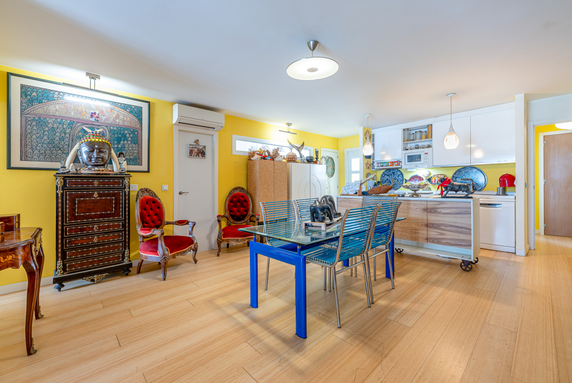 Actualmente, el inmueble refleja un encanto personal y ecléctico, pero su distribución ofrece una base fantástica que se compone de 3 Dormitorios y 2 Baños completos además de un amplio Salón-Cocina que invita a un diseño moderno y abierto sin olvidar un práctico Lavadero.