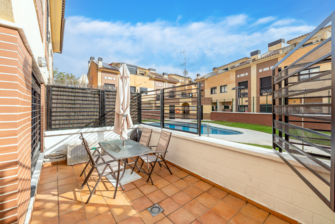 Planta Baja | El corazón social: Al entrar, nos recibe un salón-comedor inundado de luz que invita a las reuniones. La cocina es amplia y funcional y cuenta con su propia despensa. Pero eso no es todo, el salón da acceso a una amplia y soleada terraza. ¿Lo mejor? Desde ella, tienes acceso directo a la piscina, permitiendo que los días de verano fluyan entre el chapuzón y la barbacoa en casa.