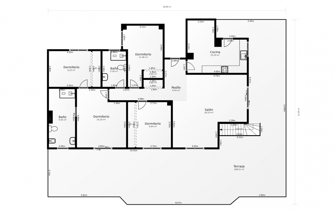 Pero la verdadera magia reside en lo alto, en sus dos terrazas privadas, un sueño de 224 m² que rivaliza con cualquier villa. Sí, has leído bien: doscientos veinticuatro metros cuadrados de puro deleite mediterráneo.