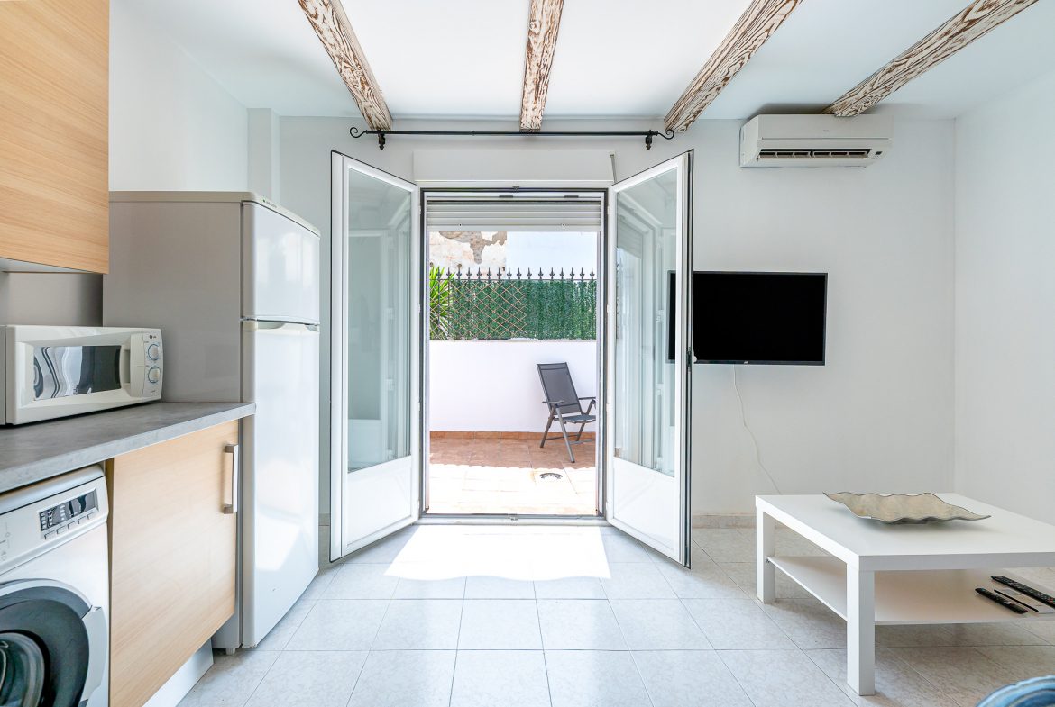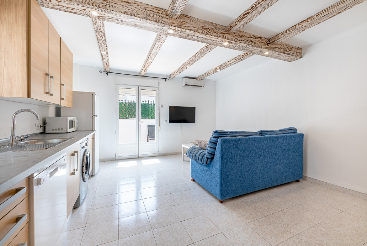Pero la verdadera magia de esta propiedad reside en sus espacios exteriores privados. Disfruta de una terraza privativa en la parte delantera, tu propio rincón de paz para desayunos al aire libre, tardes de lectura o simplemente para contemplar la vida pasar con una taza de café.